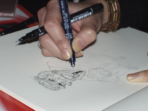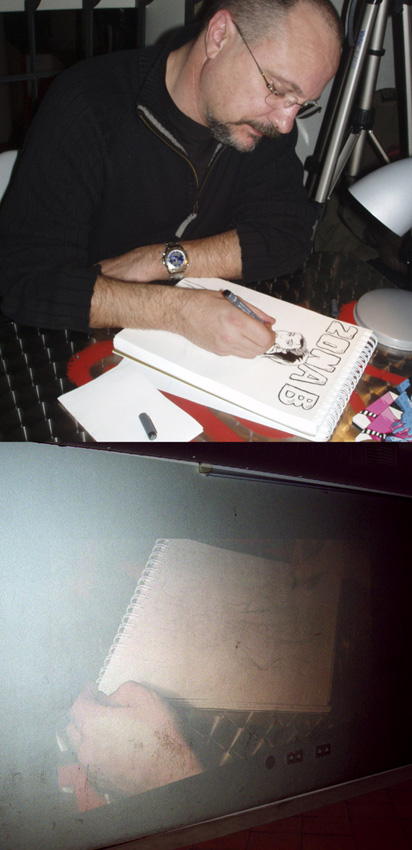 Eu estive lá, na qualidade de colaborador da última Zona Gráfica, onde participei com dois trabalhos e diverti-me bastante numa sessão que envolveu desenhos feitos na hora, acompanhados pelo público presente, através da projeção do que íamos fazendo num gigantesco ecrã. Quem lá esteve, teve, por isso, a oportunidade de acompanhar a par e passo, não só um desenho feito por mim, como também pela Joana Afonso, Fil, Miguel Gabriel, João Ataíde e André Oliveira. Isto para não falar dos autógrafos que foram dados por nós a quem os solicitou...