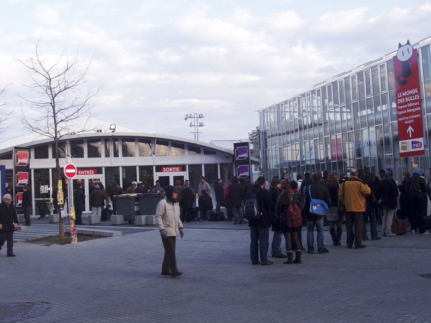 O que se torna engraçado, é que no meio da multidão que ia aumentando de dia para dia, consegui encontrar gente conhecida. Vi o Geraldes Lino, que em Portugal dispensa apresentações pois o seu trabalho como divulgador da arte é notório, o Nelson Dona, do Amadora BD, o Nuno Amado (conhecido bloguista que assina pelo nome de Bongop) e a mulher, a Aida Teixeira (a Diabba do Inferno da Diaba), o Hugo Teixeira (um talentoso colega de profissão), o Nelson Martins e a Catarina, a sua mulher. Em relação ao Nelson, até posso contar uma história engraçada, pois conheci-o precisamente há dois anos naquelas paragens. E, foi com enorme satisfação, que soube que ele, desta vez, se deslocou a Angoulême para ir autografar o álbum Tout sur les Célibataires, no stand da sua editora, a Joker. E claro está que eu aproveitei a deixa, para ter um livro com um desenho inédito seu.