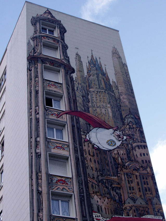 Durante a semana passada este blogue esteve praticamente inactivo. A razão é muito simples: como disse na publicação anterior, fui a Angoulême, àquele que considero um dos grandes festivais de banda desenhada do mundo. É impossível descrever, quer por palavras, quer por fotografias, o que aquilo é. Só estando lá, é que se dá conta das emoções intensas que por ali se vivem. É um facto que, desta vez, já fui repetente, uma vez que já lá tinha ido em 2009. No entanto, mais uma vez, experimentei a sensação de ver uma cidade que, durante quatro dias, respira, vive e ama banda desenhada. E não falo só do festival em si que, aliás, se encontrava espalhado por todo o lado. Falo de tudo. Desde a multidão que se desloca rumo às exposições (eu encontrei espanhóis, italianos, japoneses, enfim gente de todo o lado), até às montras das lojas que, independentemente do ramo, prestam a sua homenagem à BD, para não falar dos espectaculares murais de vários edifícios, tudo ali nos lembra que acabámos de entrar num outro mundo.