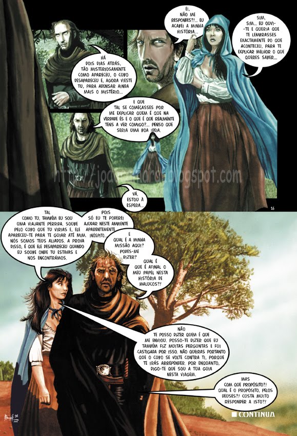 ResponderEliminarAs diferenças de visual são ao longo das várias páginas, até porque a história é uma miscelânia de flashbacks de tempos diferentes. Mas também é verdade que esta história foi um desafio para mim próprio no sentido de começar a perceber se conseguia retratar uma personagem com um modelo algo inspiurado na realidade, uma vez que até então o retrato não era o meu forte. Nesse aspecto, admito que há expressões que ficaram mais bem conseguidas do que outras. Mas esse é às vezes o problema dos quadradinhos, uma vez que se tratam de acções sequenciais. Obrigado pelas palavras e um abraço.