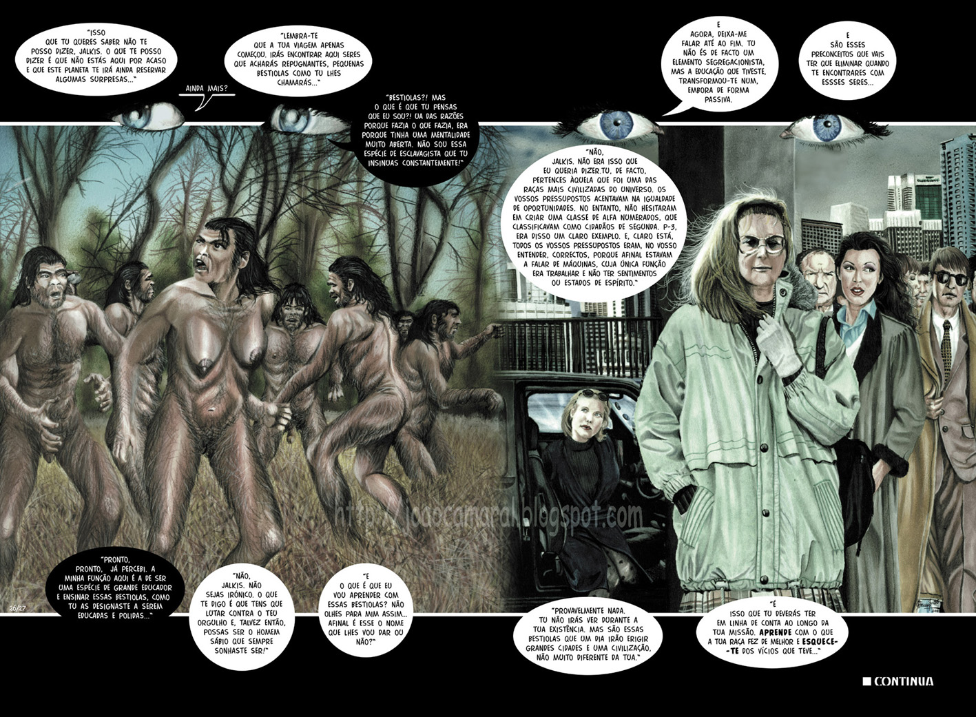 e-mail promocional prometia: 19 visões diferentes e muito interessantes de 19 autores, num imaginário que vai desde a fotografia à ilustração, passando pela banda desenhada ou pelo cartune. Foi também um momento de salutar convívio, o que, para nós autores é sempre bom, porque estas são oportunidades únicas em que podemos estar uns com os outros e falar um pouco melhor sobre o nosso trabalho e não só. Fica, por isso, aqui patente o meu reconhecimento ao pessoal da Entropia, nas pessoas do Paulo Marques, do João Pedro Figueiredo, da Adelina Menaia e da Ana Saúde, já que foram eles os grandes mentores e organizadores deste evento que contou ainda com os apoios da