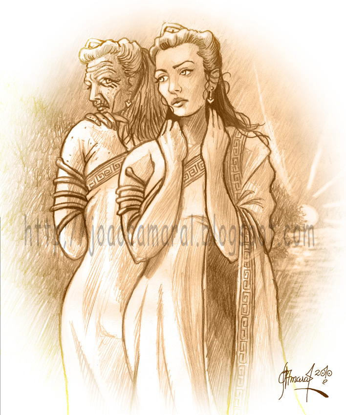 E já que falo mais uma vez de O Que Há de Novo no Império? publico também um desenho que fiz para o The Way of The Exploding Pencil, sob o tema Afrodite. Decidi, então, criar a minha visão do que seria Afrodite (no caso Vénus) na série, numa espécie de galeria de deuses caídos em desgraça, para a qual já tinha feito uma ilustração dedicada a Júpiter (ou Zeus, como lhe queiram chamar)...