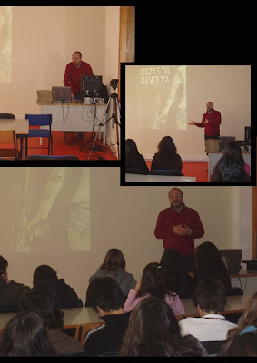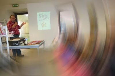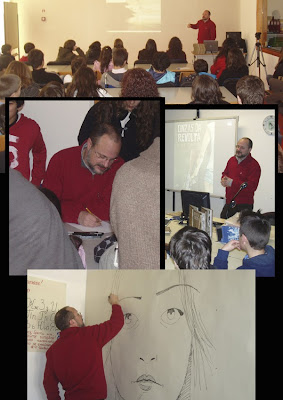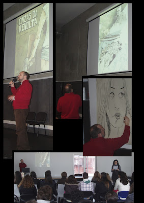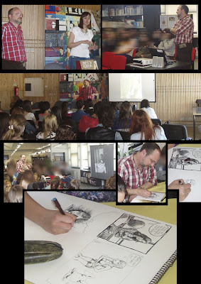 Este tem sido para mim um ano intenso de emoções e novas experiências. A par de exposições em Odemira, Beja e Viseu (que ainda decorre até ao dia 22 deste mês) e um prémio pelo meu trabalho, tive também, pela primeira vez, o que se pode designar como uma espécie de tour por várias escolas do país. E, se já tinha tido algumas (poucas) experiências de falar para um público, a verdade é que estas constantes viagens pelo país que decorreram entre Fevereiro e Maio, foram também para mim uma constante aprendizagem. É que nós os desenhadores estamos habituados a passar a maior parte do tempo "isolados na caverna", em plena labuta de criação...