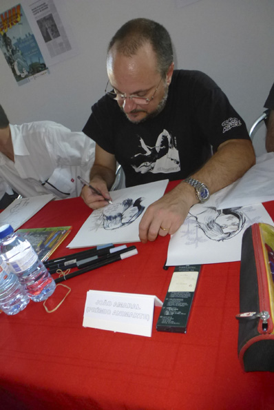 Falando agora a sério, tenho que agradecer em primeiro lugar ao GICAV, nas pessoas do Carlos Alberto Almeida e do Luís Filipe Mendes, bem como ao Luiz Beira por se terem lembrado de mim. Apesar da nossa carreira ser muitas vezes difícil e não correr às vezes da forma que queremos ou sonhamos, este prémio significa para mim uma motivação acrescida. Tenho pois aqui um forte incentivo para continuar e, sempre que me sentir desmotivado, poderei sempre contemplá-lo e utilizá-lo para vencer as inseguranças. Por fim, quero exprimir que me sinto extremamente orgulhoso por tê-lo recebido no mesmo dia em que o Geraldes Lino, alguém que muito admiro e considero ser uma das pessoas que mais fez pela BD neste nosso país, à beira mar plantado. Esse foi, de facto, um troféu mais do que merecido...