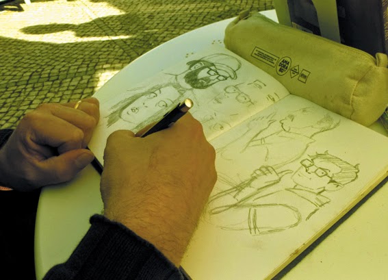 Ficam aqui duas imagens do passado fim-de semana na Feira do Livro de Lisboa. Até nos momentos mortos vai dando para rabiscar alguma coisa, desenvolver bonecos, possíveis ideias ou simplesmente dar trabalho à mão e ao lápis para não arrefecerem... Aproveito para lembrar que hoje, dia 10, também por lá andarei: das 16 às 18.00 horas na Praça Leya e das 18 em diante no stand da Âncora Editores. Estão desde já convidados...