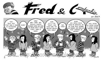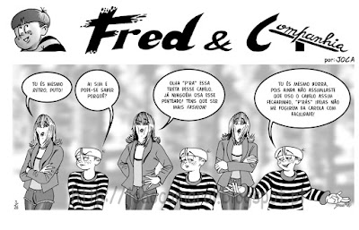 Por fim, entre outras coisas, foi-me oferecido este marcador de livros feito também por alguns estudantes desta escola precisamente com o meu Fred... que, por estes tempos, já não é inteiramente meu. Esta é uma prenda que irei guardar com todo o carinho que merece e funciona aqui no blogue também como uma compensação, já que esta semana, por razões óbvias, não tive tempo de fazer a habitual tira. Partilho então este muito agradável presente, na expectativa de que gostem tanto dele como eu gostei.