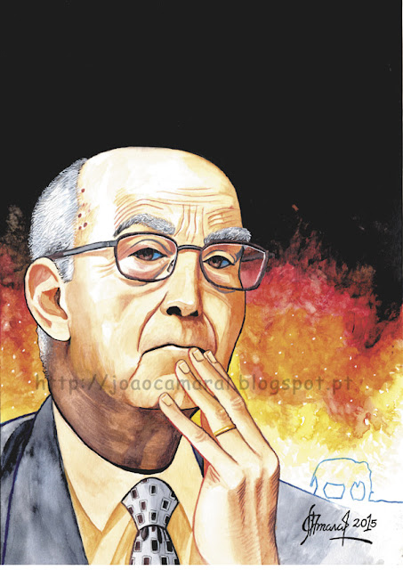 O desafio foi-me lançado por amigos que queriam que eu fizesse algo com José Saramago, na sequência da banda desenhada sobre A Viagem do Elefante, baseada num romance seu. Decidi então experimentar pintar a obra em aguarela, mesmo sabendo que nunca tinha feito um retrato com esse tipo de material e num tamanho tão grande (A3). O resultado foi este que apresento hoje aqui...
