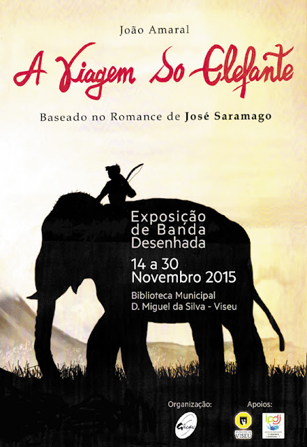 É já no próximo sábado, dia 14, às 16.00 horas que inaugura na biblioteca municipal D. Miguel da Silva, em Viseu uma exposição relativa ao meu mais recente trabalho: a adaptação de A Viagem do Elefante, de José Saramago para banda desenhada. Quem tiver a oportunidade de se deslocar a esta bonita cidade beirã, poderá ver algumas reproduções de pranchas, desenhos e saber um pouco do que foi todo o processo criativo desta obra. Na sessão inaugural, obviamente que estarei presente para também falar sobre esse assunto. Para já, fica o meu agradecimento aos elementos do GICAV, que tiveram a ideia e organizaram todo o núcleo expositivo relativo a este meu trabalho, bem como à câmara municipal pelo apoio. Fica então aqui exposto o cartaz e o convite dirigido a todos os que puderem comparecer.